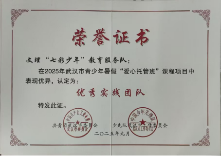 喜报|文理“七彩少年”教育服务队获武汉市“优秀实践团队”