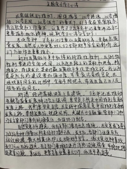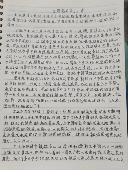 习近平指出,推动金融高质量发展、建设金融强国,要坚持法治和德治相结合,积极培育中国特色金融文化。作为青年员工,我们要深刻理解把握习近平总书记重要讲话的丰富内涵、精髓要义和实践要求,深刻领悟“两个确立”的决定性意义,坚决做到“两个维护”,切实努力钻研自身专业方向,为坚定不移走中国特色金融发展之路添砖加瓦。