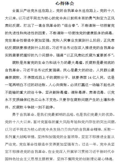 要坚持解放思想、实事求是、与时俱进、守正创新,不断进行实践探索和理论创新,不断深化对党的自我革命的规律性认识,把党的自我革命的思路举措搞得更加严密,把每条战线、每个环节的自我革命抓具体、抓深入。作为先进员工集体,我们不仅要坚持自纠自查,同时也要积极接受其他同学的监督,弘扬正气之风,踏踏实实为员工办实事、办好事。