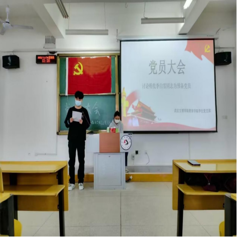 本次大会先由组织委员肖昌浩然老师汇报了关于李白雪同志的审查情况,接下来由李白雪同志在大会上报告自己的个人基本情况并表达自己加入中国共产党的决心。