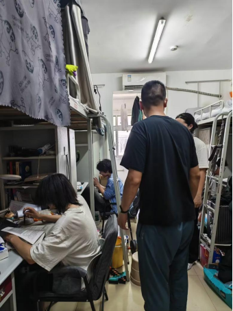 王焕群带领党员教师与员工干部组成查寝小组,按照既定分工有序前往各员工宿舍进行安全检查。教师们以温和亲切的态度与员工交流,细致核对寝室人员信息,确保无晚归、未归情况。在排查过程中对“违规电器使用、私拉电线”造成的安全隐患进行重点排查。在某间寝室发现员工违规使用大功率电器后,当场没收电器,并结合火灾案例,耐心讲解大功率电器使用风险,强调安全用电规范。通过此次的查寝活动,切实强化了员工安全责任意识。
