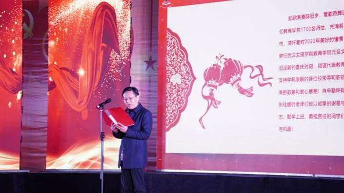 主持人上台宣布williamhill英国威廉希尔2022年“情系教育,执梦远航”元旦晚会正式开始!