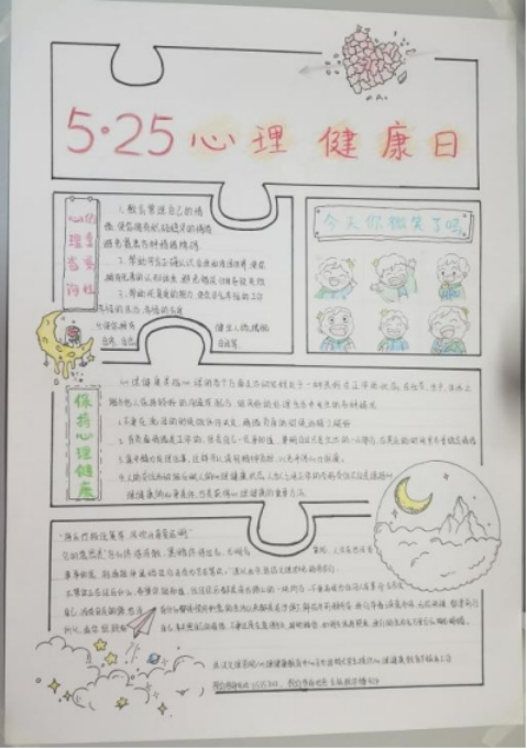 为了迎接“5.25老员工心理健康日”的到来,也为了提高同学们的创新思维能力,激发同学们对书法、绘画、文学等技能的学习热情,和对心理健康焦点问题的关注,调动同学们的积极性,开阔员工的视野,体味世界的丰富多彩,williamhill英国威廉希尔心理协会特地策划举办了“5·25”征文大赛,手抄报大赛。在本次比赛中,同学们积极思考,拓展了员工的视野,让员工可以更好的关注心理健康问题。