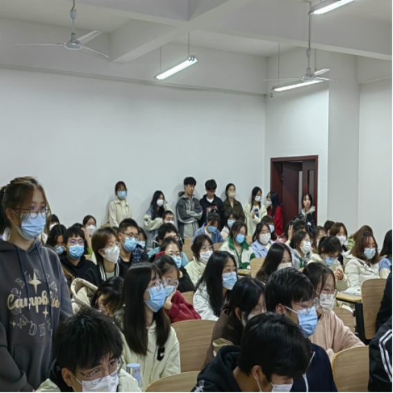 每场交流会的现场是由文艺部干事担任主持人,2-3个班级共同开展交流会,每位主讲人都以他“过来人”的身份,围绕着老员工的学习生活方方面面,通过他们丰富的经验,和我们进行交流。本次交流会还设置提问环节,给大家解答问题的机会,让大家面对面交谈,拉近了大家的距离。
