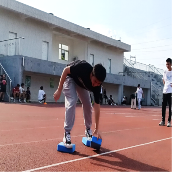 摸石头过河是一个人使用三块“石头”过河,双脚不得触碰地面,依次脚踩“石头”交替前进进行接力,直至所在队伍五名队员完成接力,用时最短的队伍获胜。