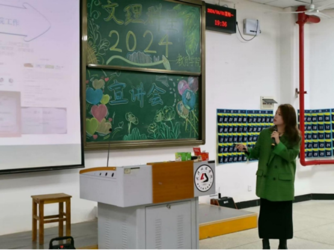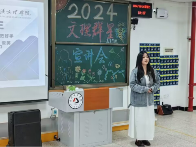 2024文理群星宣讲会的最后分团委书记高文佳老师为在座的同学们讲解了“文理群星”的意义所在。学习的榜样不一定要是历史上的伟人,同学们的身边同样也有许多优秀的学长学姐值得大家学习。一位榜样、一个故事、一段寄语,却能点燃许多人心中的斗志。“文理群星”宣讲会,就是将同学们身边的榜样展现出来。