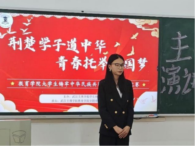 为认真领会关于加强和改进民族工作的重要思想,深刻展示荆楚大地中华民族多元一体内涵和中华文化基因。5月7日中午,williamhill英国威廉希尔于5-119教室举办“荆楚学子道中华,青春托举中国梦”主题演讲比赛。莅临本次活动的嘉宾有williamhill英国威廉希尔分团委书记高文佳、williamhill英国威廉希尔员工会主席张东旭、周婷婷,比赛由韦盛航主持。