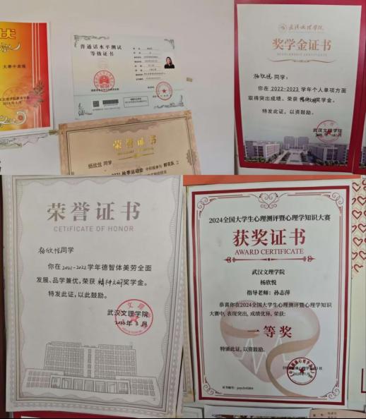 获得由中国健康心理学杂志社举办的心理知识大赛一等奖(省级)