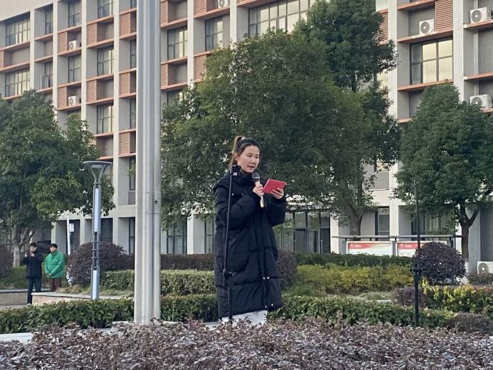接下来由来自24级小学教育1班的陈若萱同学作为员工代表进行主题为《不忘历史,奋勇向前》的国旗下演讲,她在演讲中阐述了作为新时代青年,我们要不忘历史,奋勇向前;要树立正确的价值观,将历史教训转化为前进动力;要敢于担当社会责任,传播正能量。铭记历史长河中的悲剧,以此为诫,警惕世人。身为青年一代,我们要保持终身学习的态度,不断汲取新知识、新技能。博观而约取,厚积而薄发,心有底气,才能不惧前行。