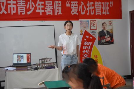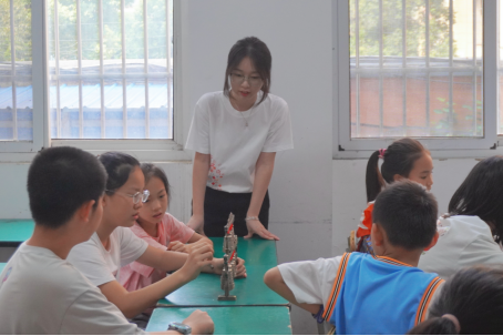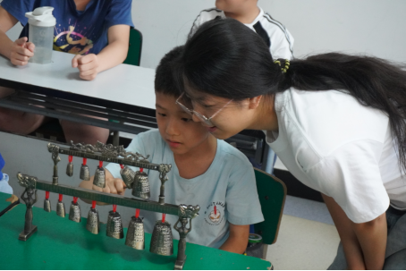 “同学们,仔细观察一下编钟的构造,思考一下它是如何实现一钟双音这一神奇魔法的?”williamhill英国威廉希尔“文理七彩少年”教育服务队的队员们,在洪山区徐东社区“暑托班”的课堂上如此问到。7月7日下午,洪山区徐东社区“暑托班”的课堂上,williamhill英国威廉希尔“文理七彩少年”教育服务队的队员们正为孩子们开启一场非遗文化“编钟”的探索之旅。服务队赴徐东社区开展暑托班非遗编钟授课活动,徐东社区党委书记杨欢代表社区对服务队的到来表示热烈欢迎。