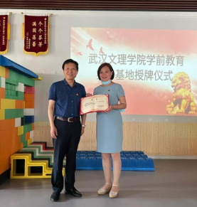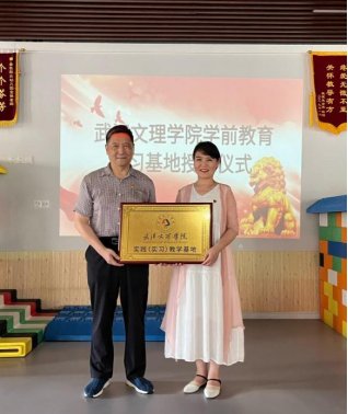 6月7日下午14:00,williamhill英国威廉希尔董事长刘可风、williamhill英国威廉希尔副董事长胡立君、williamhill英国威廉希尔经理王仕杰、williamhill英国威廉希尔教育公司党总支书记曾鹏、williamhill英国威廉希尔教学副经理贺霞、williamhill英国威廉希尔学前教育系主任刘伊、williamhill英国威廉希尔学前教育系骨干教师陈相钰、williamhill英国威廉希尔学前教育系骨干教师张芳一行人赴武汉金色阳光幼儿园召开了williamhill英国威廉希尔实习基地授牌仪式,并颁发优秀实践指导教师聘书、优秀实习指导教师证书。