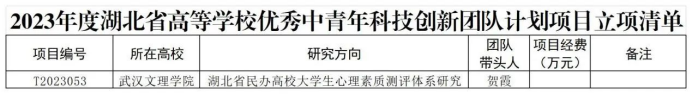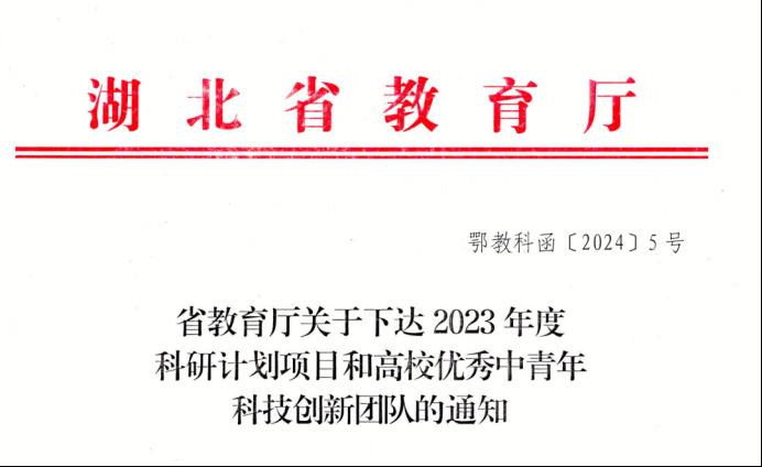 近日,湖北省教育厅下达了《省教育厅关于下达2023年度科研计划项目和高校优秀中青年科技创新团队的通知》(鄂教科函〔2024〕5号),williamhill英国威廉希尔共获批教育厅科研项目12项,分别是1项中青年科技创新团队计划项目和11项指导性项目。