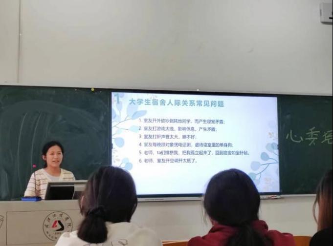 首先,付优老师以湘大宿舍投毒案为例,请同学们思考并分享了自己对寝室关系的看法和处理经验,大家认为室友之间的相处需要更多的沟通、包容和理解。付老师随后对老员工宿舍人际关系的常见问题、产生原因、如何处理及预防宿舍问题做了详细的介绍和总结。她强调要学会有效沟通,避免暴力沟通,学会换位思考,这些具体有效的措施,不仅为心理委员们提供了实用的指导,还将在维持人际关系中发挥重要作用。