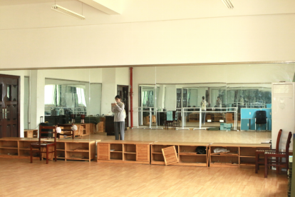 走进舞蹈室,整面落地镜延伸视觉空间,搭配环绕式把杆,帮助舞者精准观察动作细节、辅助日常训练。专业级地胶铺满地面,兼具弹性与防滑性,有效缓冲跳跃冲击,保护关节安全。教室内设有置物架与挂钩,方便舞者存放衣物与随身物品;角落的休息区摆放软垫与,供舞者随时调整状态。此外,舞蹈室采用隔音设计,隔绝外界噪音干扰,为每一位舞者提供安静专注的练习环境,助力尽情挥洒汗水,绽放舞蹈魅力。