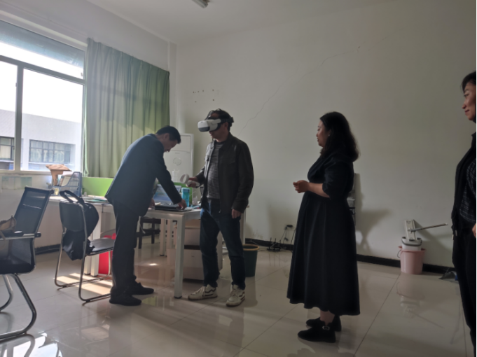 会议结束后,廖建刚副处长、王仕杰经理以及应用心理系教师在辛玉主任的带领下体验了中青成长心理健康服务体系中的VR场景体验。