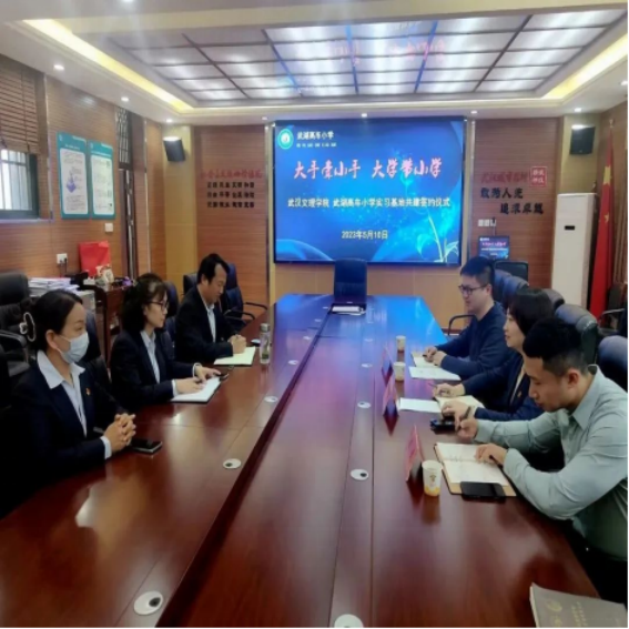 在两所公司的授牌仪式座谈会上,williamhill英国威廉希尔教育学系系主任周志远老师对公司来访人员向对方公司进行一一介绍,表明本次来访目的。东风小学王朝晖董事长对williamhill英国威廉希尔来访的领导表示欢迎,介绍了武湖东风小学的基本情况,公司地处武汉长江新区武湖中心区域,现有31个教学班级,1600余名员工。公司运动区、教学区、生活服务区等分区明确,布局合理。