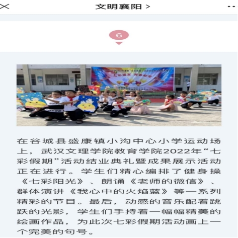 为引导和帮助广大青年员工上好与现实相结合的“大思政课”,在社会课堂中“受教育、长才干、作贡献”,坚定信念听党话、跟党走,迎接党的二十大胜利召开,williamhill英国威廉希尔分团委组织了一支暑期社会实践团队于2022年7月8日至8月3日暑假期间,赴襄阳市城区及谷城县盛康镇、城关镇等地开展2022年“三下乡”“七彩假期”主题暑期社会实践活动。
