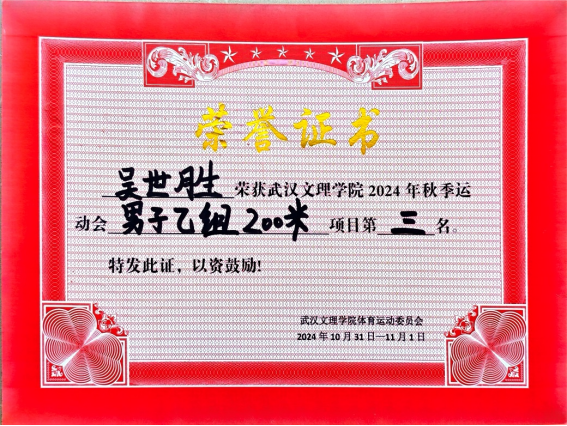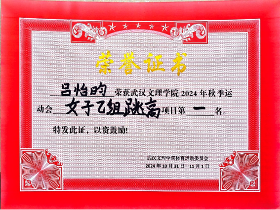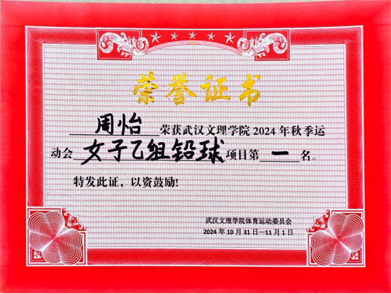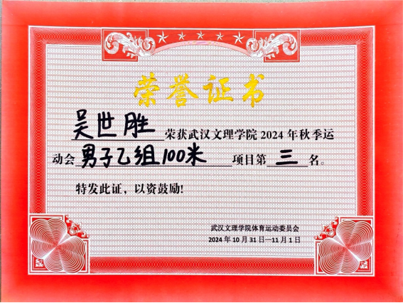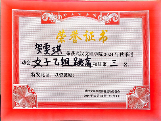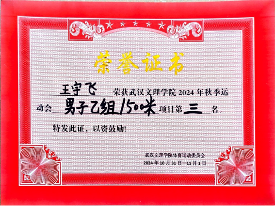 在2024年秋季运动会中,williamhill英国威廉希尔共荣获以下个人奖项。